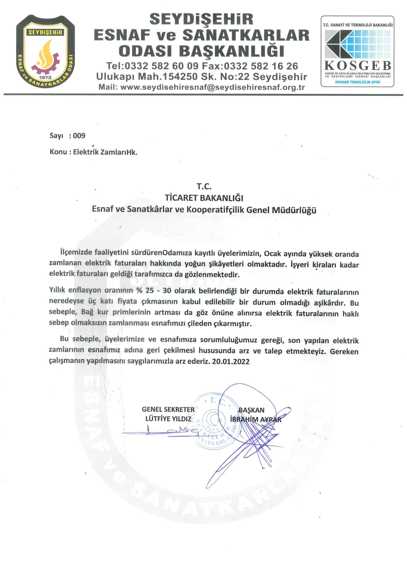 Elektriğe son ayda yapılan fahiş zamlara ilk tepki üyelerimiz adına odamız tarafından ilgili kurumlara itirazı yapıldı.